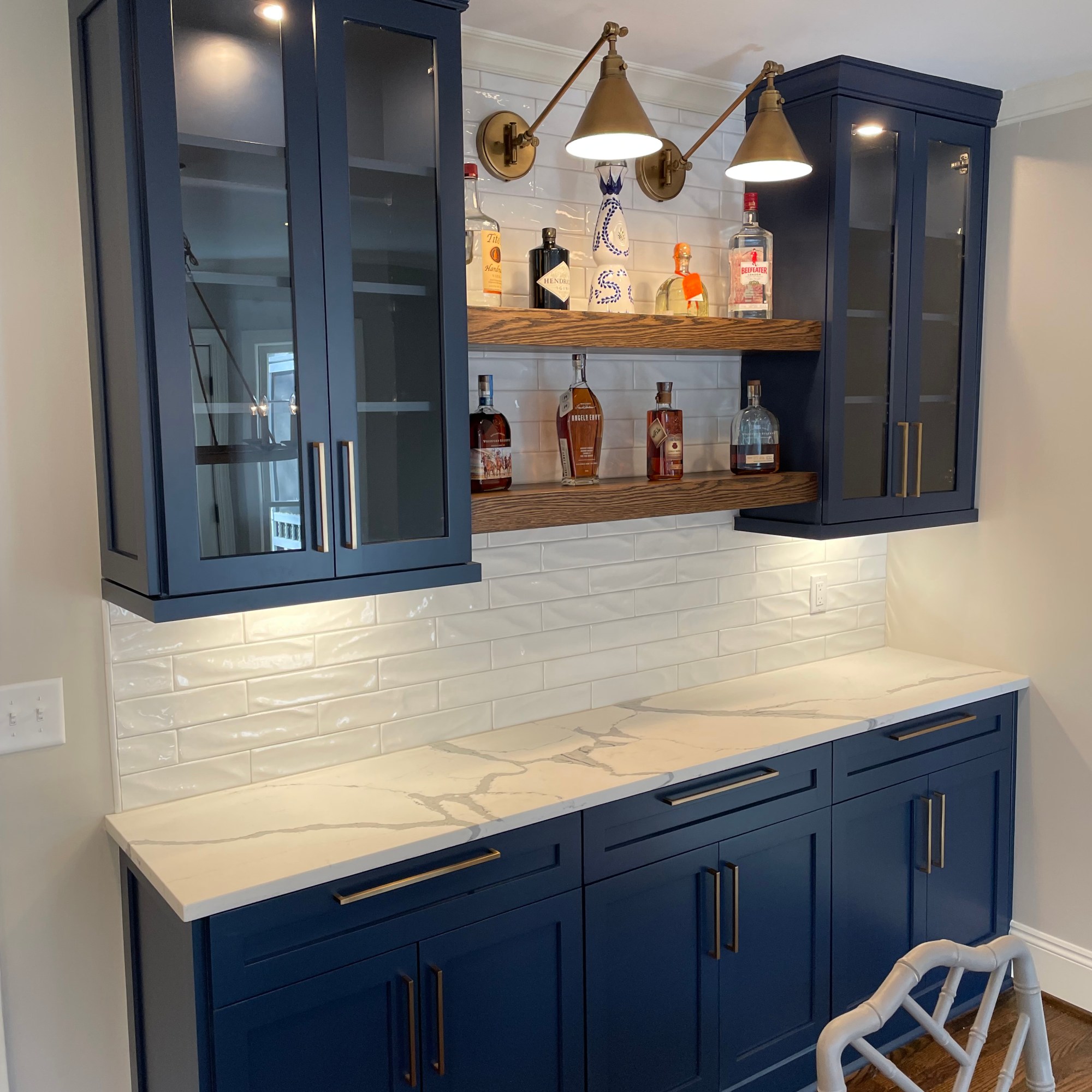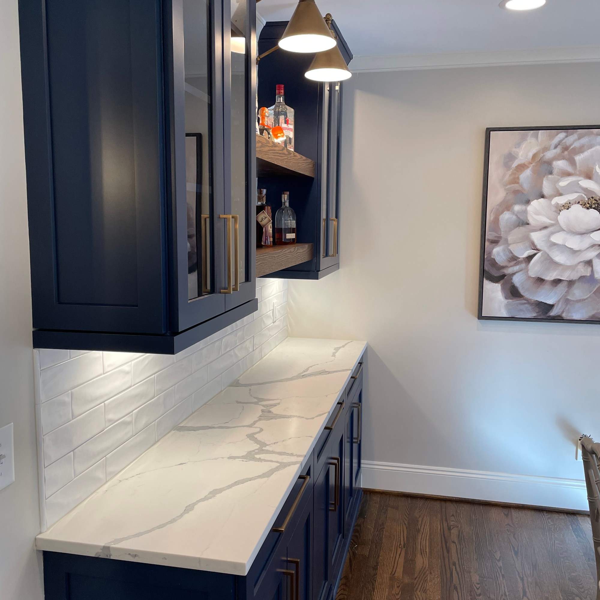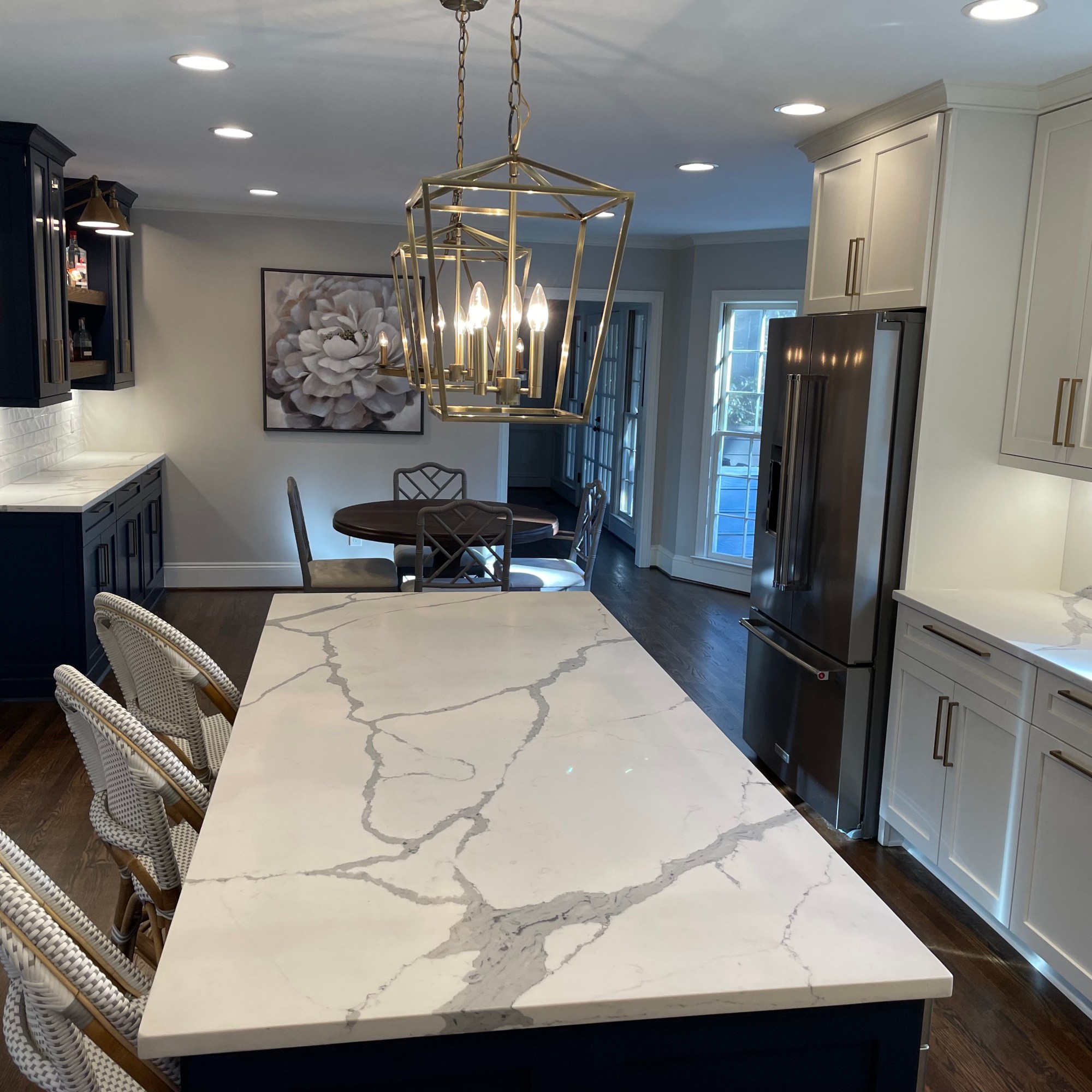 Not only was this kitchen outdated, but it was also dark, gloomy and didn’t create a space our clients wanted to cook in. This is not what you want for one of the most used spaces in your home! We completely gutted what was there and started fresh. With the right lighting, color palette and layout, we achieved a room that is welcoming and will feed many mouths for years to come.